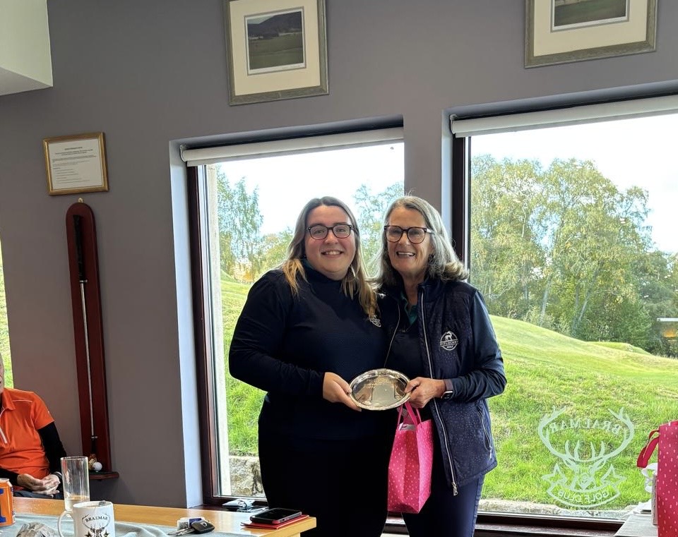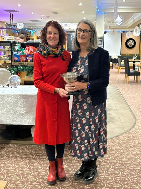 A record number of Past Captains attended this years Past Captains Day with 4 Past Captains playing for the cup. There was a lovely atmosphere as we all chatted and reminisced. Everyone enjoyed a lovely meal courtesy of The Red Deer and a drink courtesy of the late Margaret MacRae so Cheers Margaret. The winner this year was Lande Pattinson seen here being presented with the trophy by Helen Telford. Runner up was Audrey Smith.